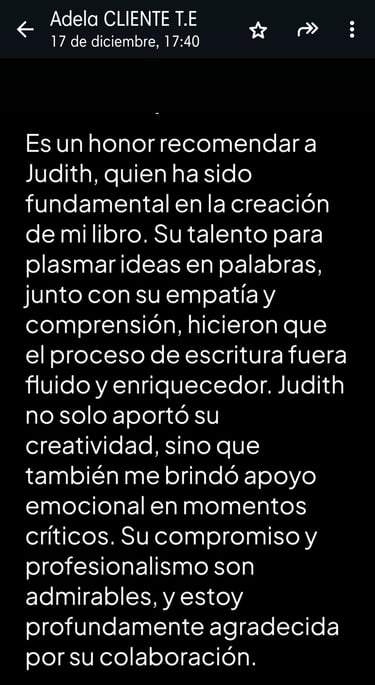 Conoce los testimonios de mis clientes de escritura por encargo o publicación tradicional (publicasen o no bajo el sello ATRIA VITELA). En ATRIA VITELA nos encanta mantener el contacto con nuestros clientes sin importar la línea de publicación a la que pertenezcan, porque ATRIA VITELA valora el cariño y la dedicación, quiere veros volar y cumplir sueños. ¿Quieres unirte a nuestra familia?